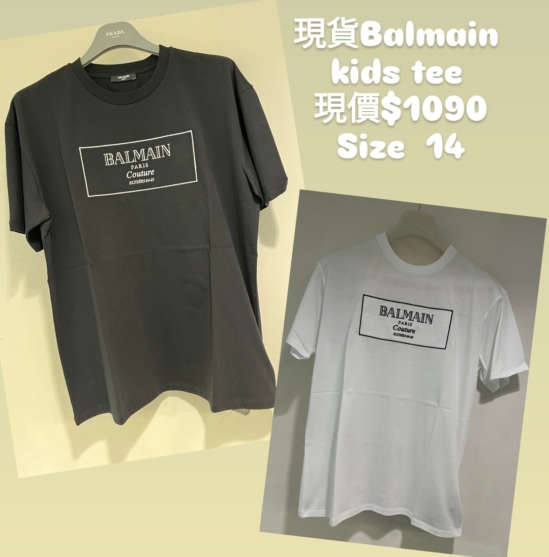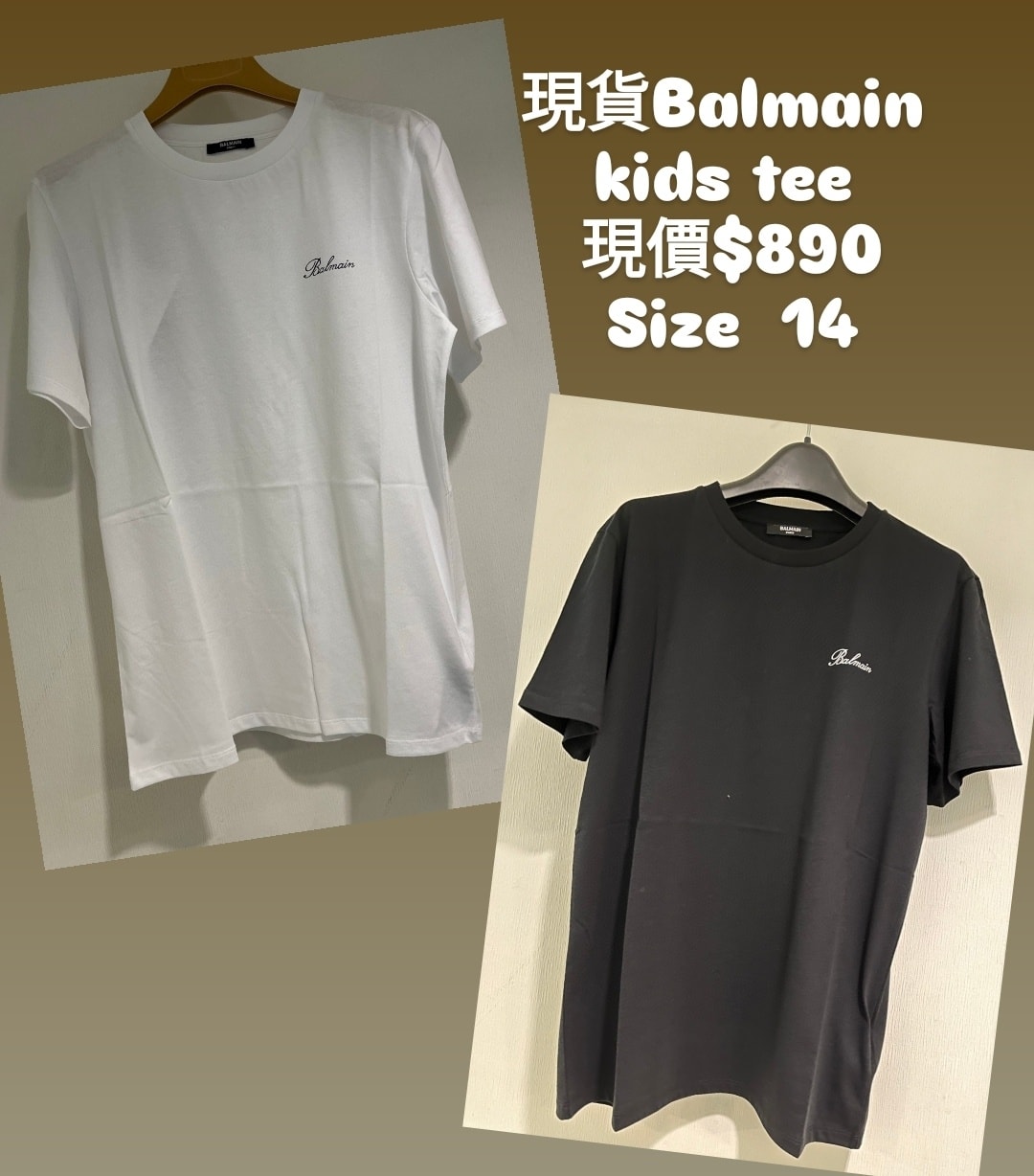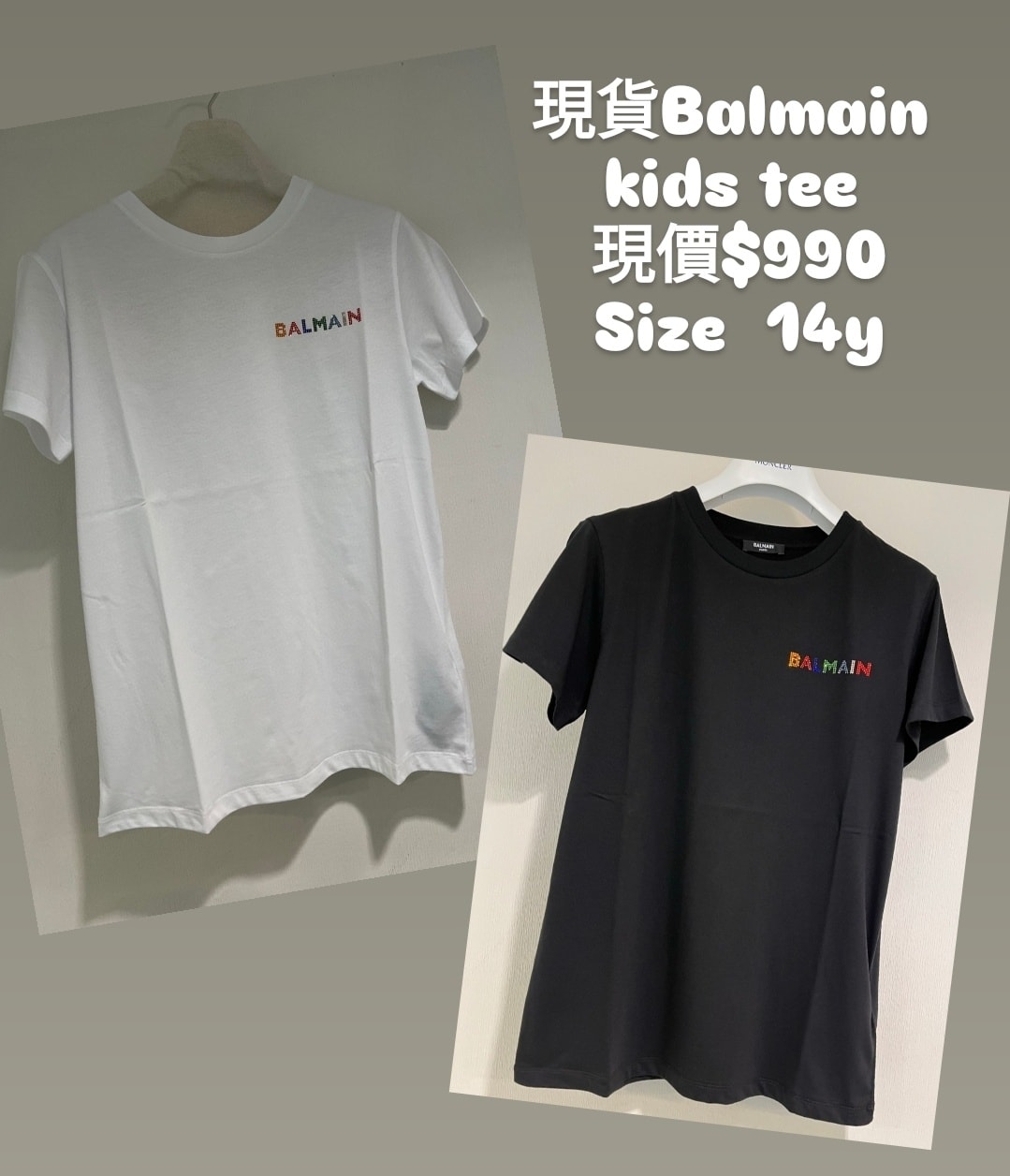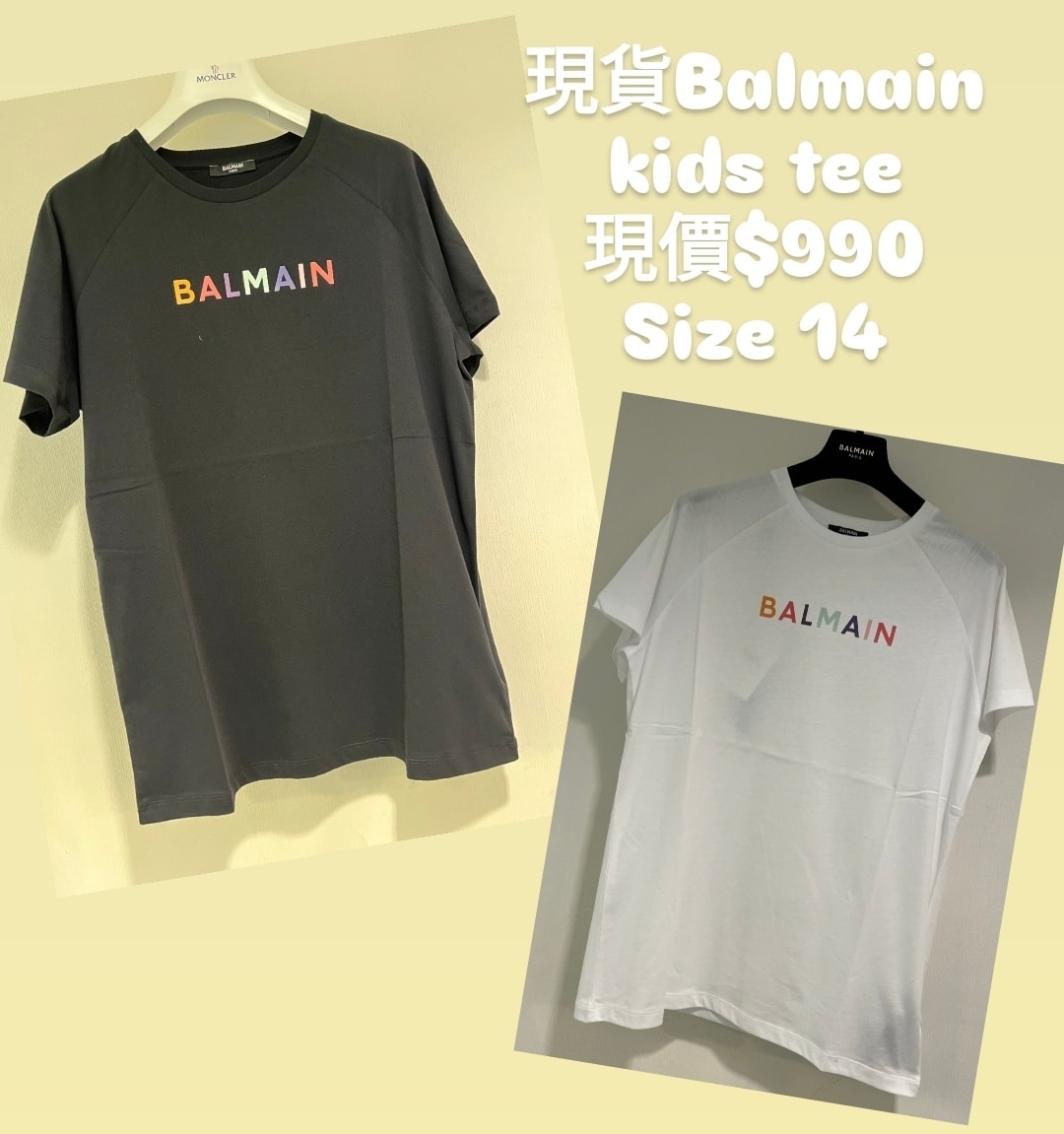 現貨Balmain kids tee Size 13 14 建議可先Whats app 60159909 跟店員查詢存貨/碼數狀態及最新價格。 下單後同事會聯絡跟進訂單,下單前請註明尺碼。 如需要包裝例如:盒、紙袋等,請購買前詢問清楚,一般現貨沒有專門店紙袋! 包郵順豐(只限香港地區順豐站/👉🏻智能櫃) /尖沙咀或深水埗地鐵交收(就時間)/ 尖沙咀門市只供取貨 (要預約)