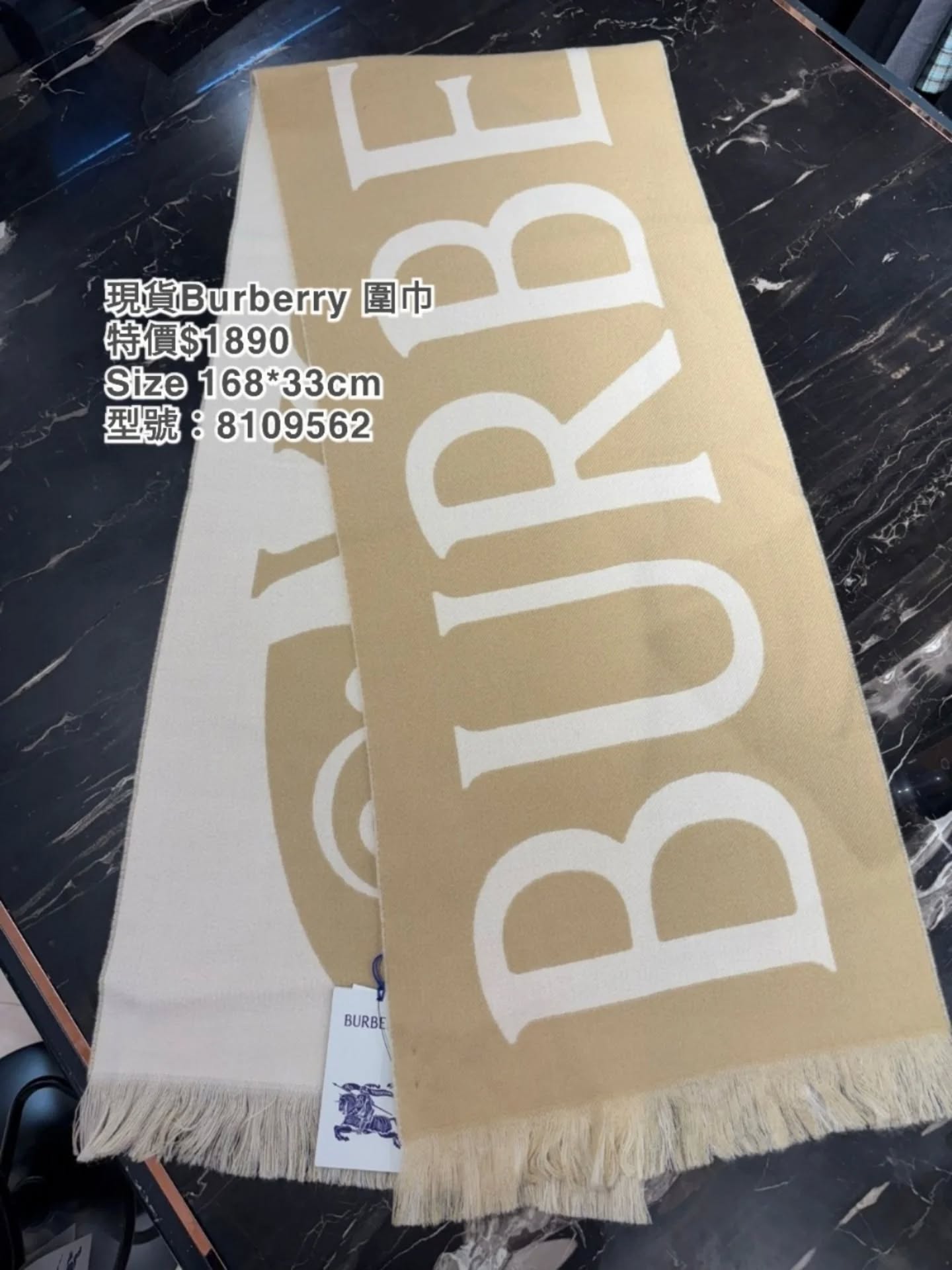 現貨Burberry 圍巾 特價$1890 Size 168*33cm 型號