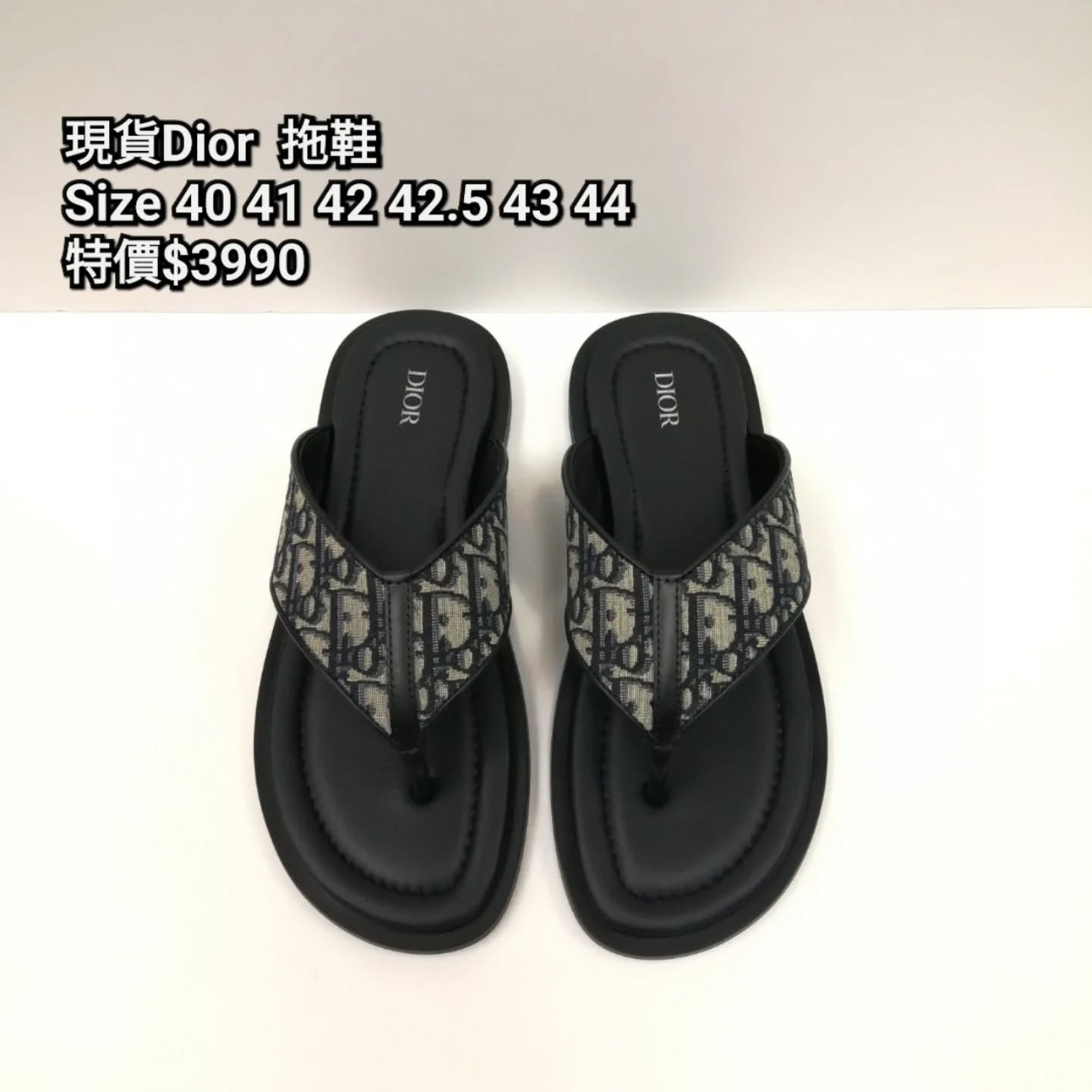 現貨Dior 拖鞋 Size 40 41 42 42.5 43 44 特價$3990 建議可先Whats app 60159909 跟店員查詢存貨/碼數狀態及最新價格。 下單後同事會聯絡跟進訂單,下單前請註明尺碼。 如需要包裝例如:盒、紙袋等,請購買前詢問清楚,一般現貨沒有專門店紙袋! 包郵順豐(只限香港地區順豐站/👉🏻智能櫃) /尖沙咀或深水埗地鐵交收(就時間)/ 尖沙咀門市只供取貨 (要預約)