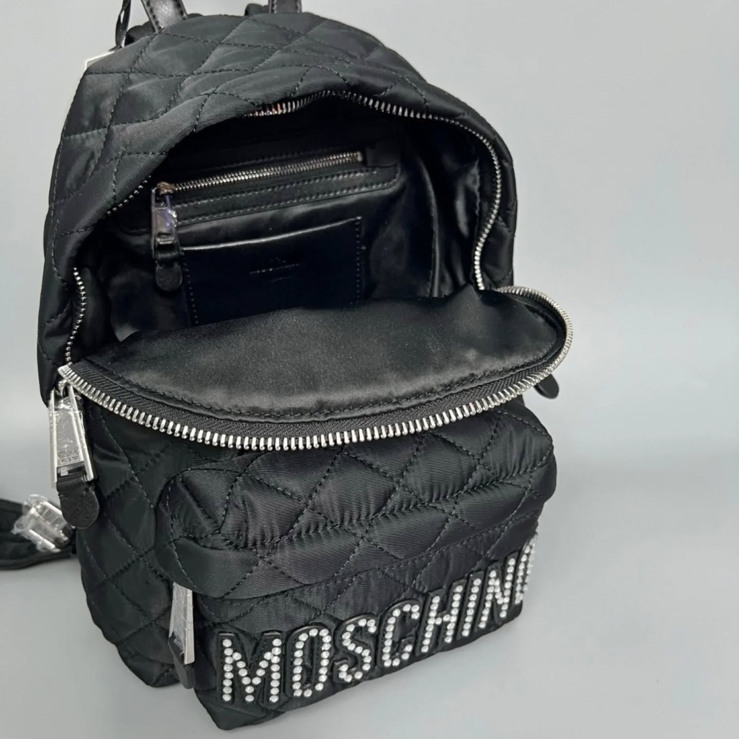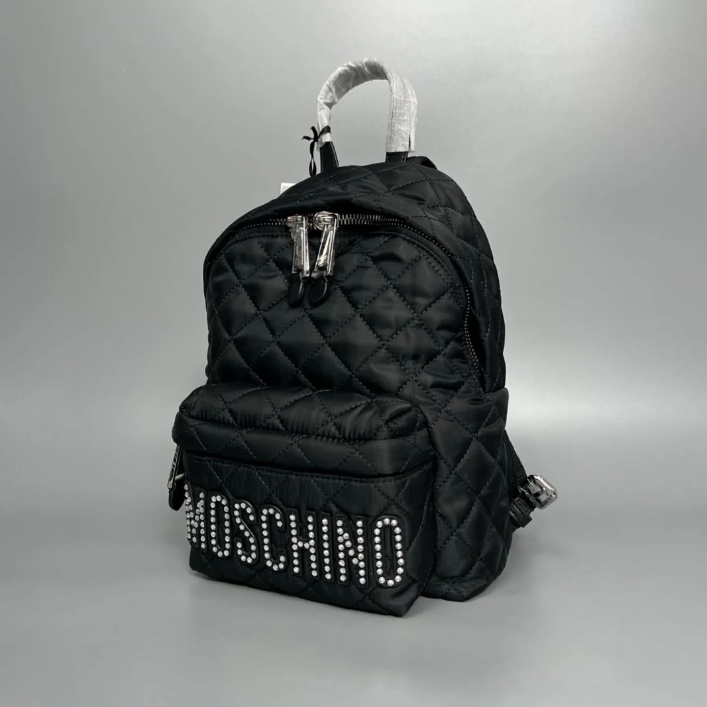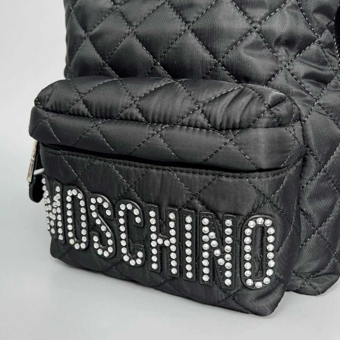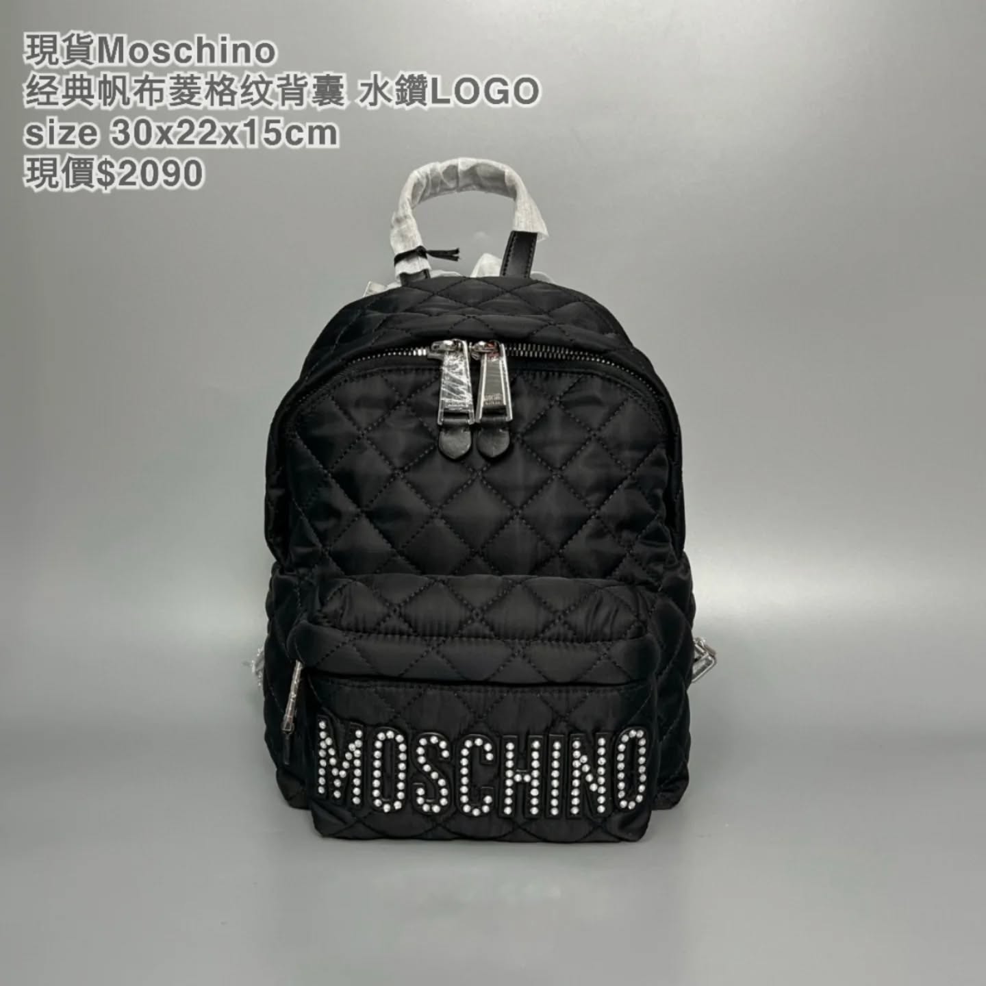 現貨Moschino经典帆布菱格纹背囊 水鑽LOGOsize 30x22x15cm