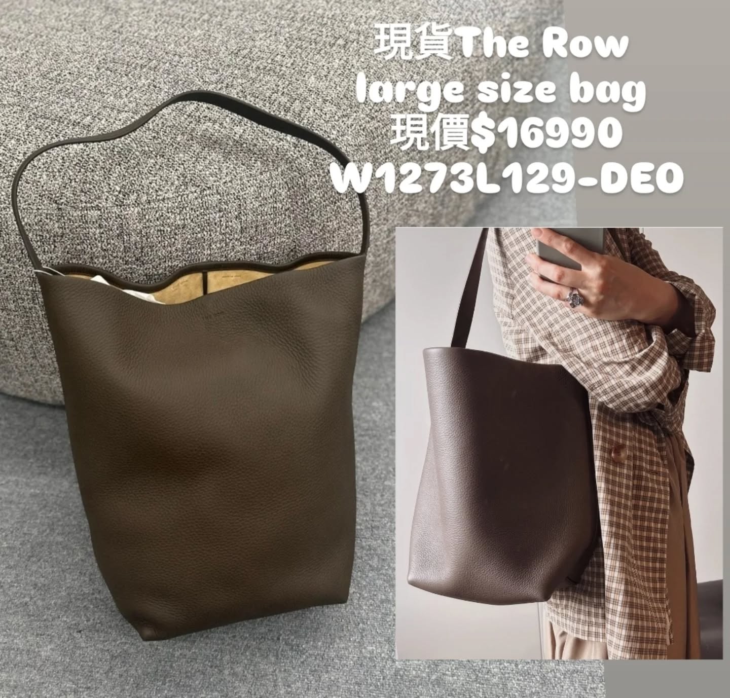 現貨The Row large size bag W1273L129-DEO 建議可先Whats app 60159909 跟店員查詢存貨/碼數狀態及最新價格。 下單後同事會聯絡跟進訂單,下單前請註明尺碼。 如需要包裝例如:盒、紙袋等,請購買前詢問清楚,一般現貨沒有專門店紙袋! 包郵順豐(只限香港地區順豐站/👉🏻智能櫃) /尖沙咀或深水埗地鐵交收(就時間)/ 尖沙咀門市只供取貨 (要預約)