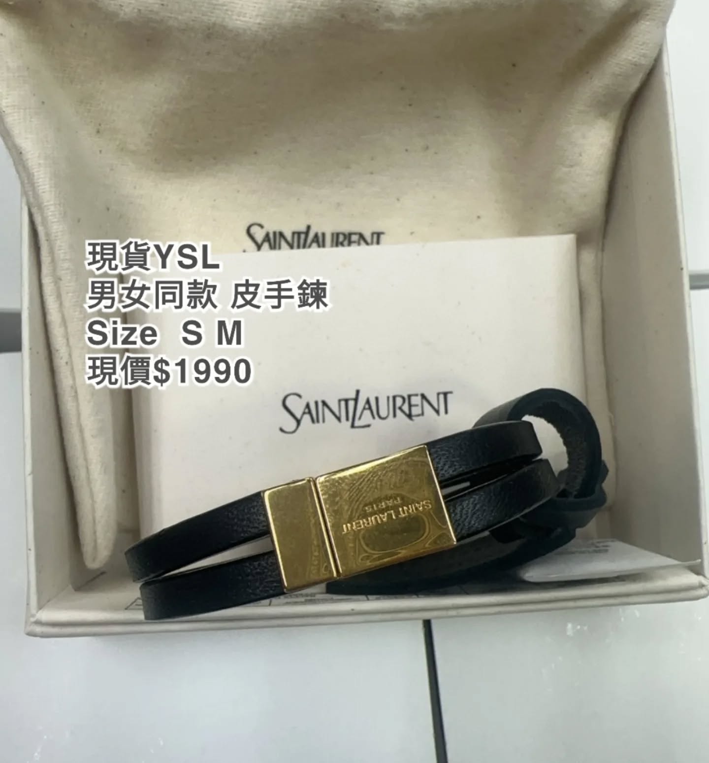 SAINTIAI IRENT 現貨YSL 男女同款 皮手鍊 Size S M 建議可先Whats app 60159909 跟店員查詢存貨/碼數狀態及最新價格。 下單後同事會聯絡跟進訂單,下單前請註明尺碼。 如需要包裝例如:盒、紙袋等,請購買前詢問清楚,一般現貨沒有專門店紙袋! 包郵順豐(只限香港地區順豐站/👉🏻智能櫃) /尖沙咀或深水埗地鐵交收(就時間)/ 尖沙咀門市只供取貨 (要預約)